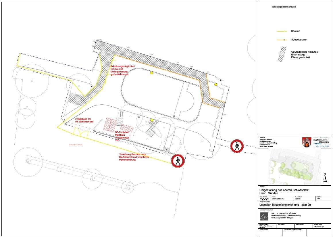 Aufgrund einer Baustellenverlagerung werde auf dem oberen Schlossplatz ein neuer Zugang in unmittelbarer Nähe zur Straße „Vor der Burg“ auf der westlichen Seite des Areals eingerichtet.